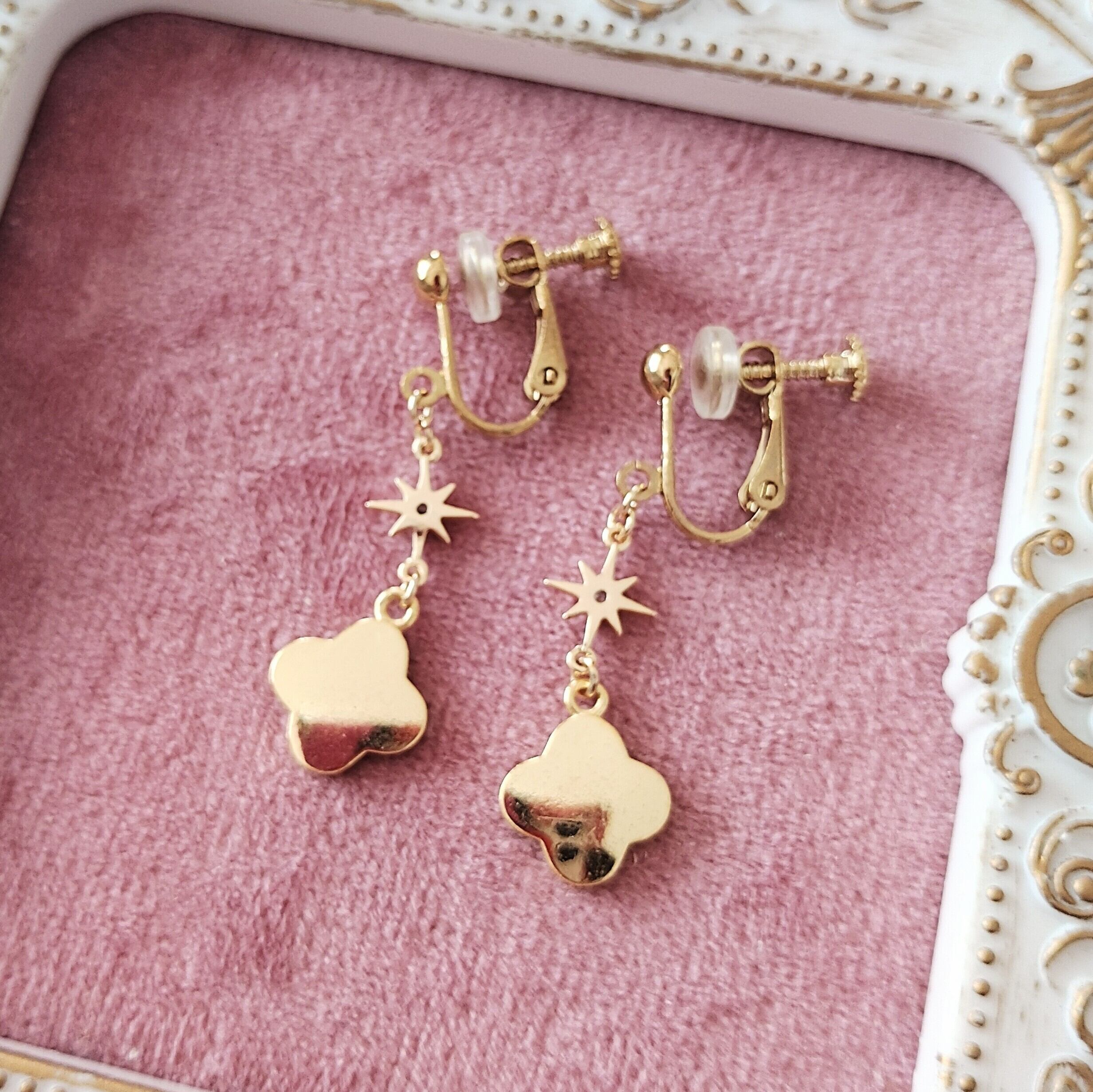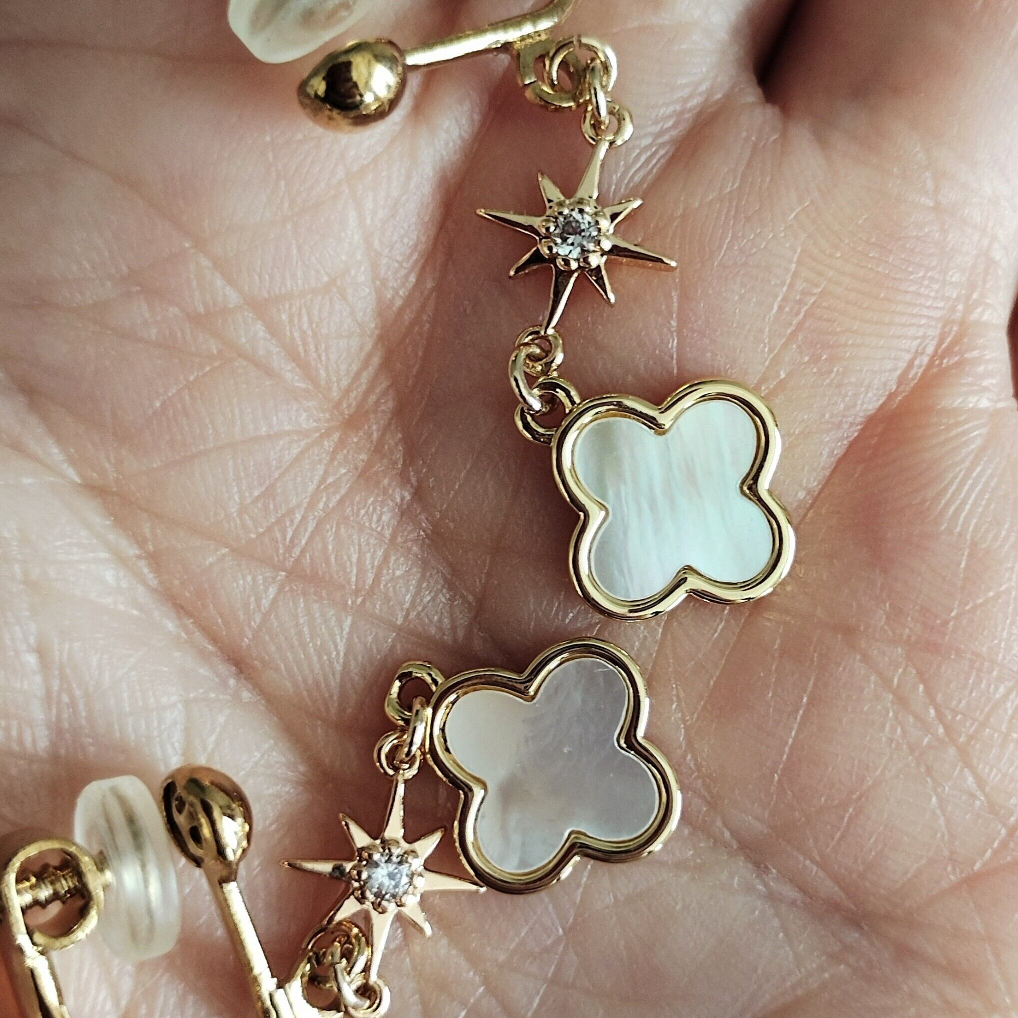 ○金属アレルギー対応 クローバー型の白蝶貝イヤリング