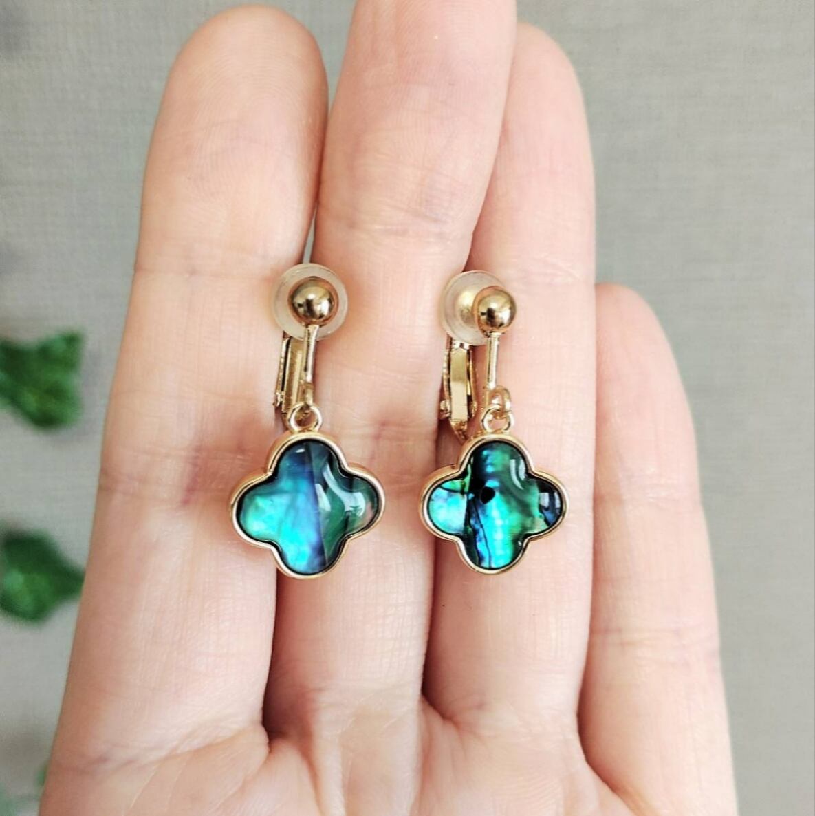 深い緑色のクローバー型のアバロンシェルパーツを使用しています。