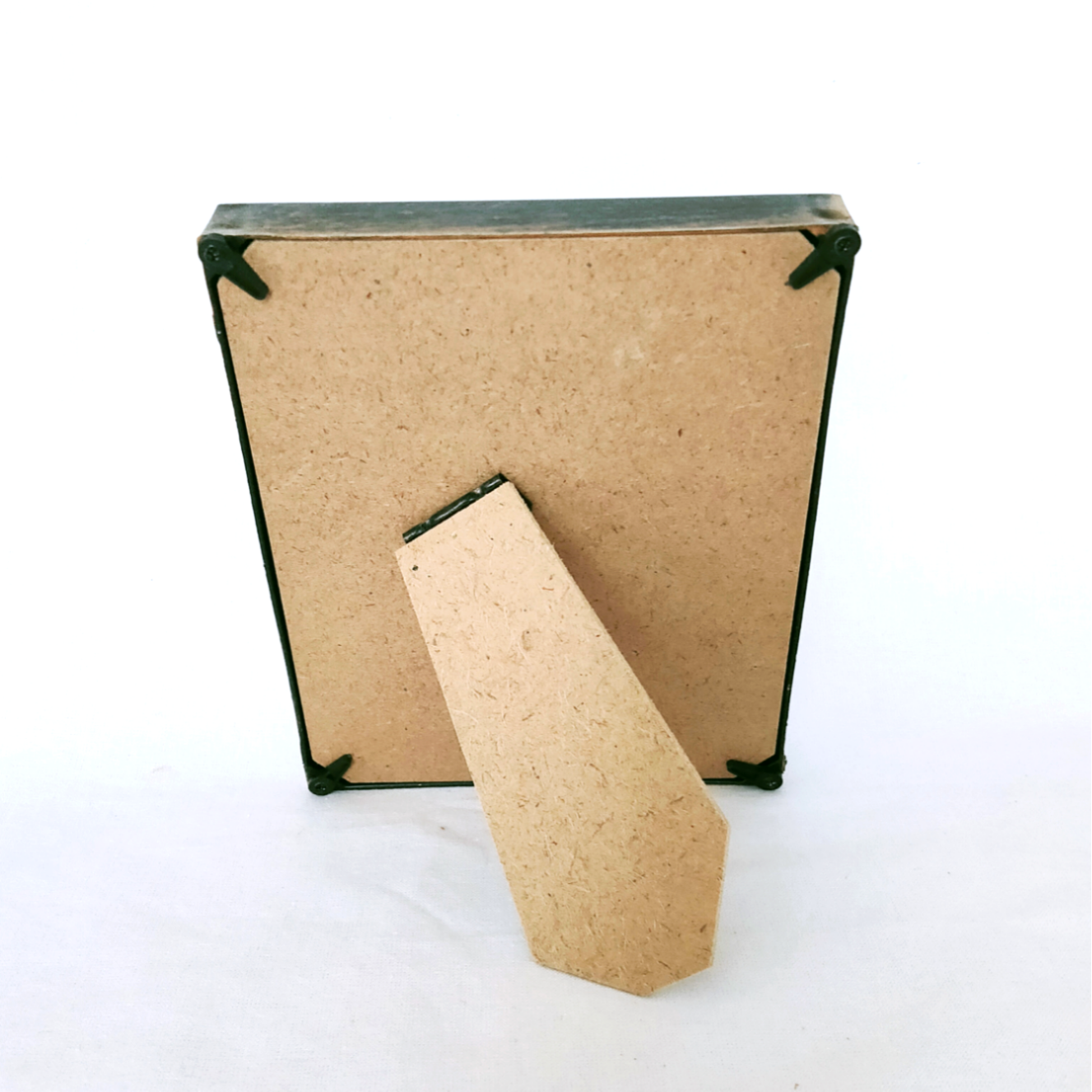 枠はシックなブラック、布は落ち着きのあるセピア色の縦型です。