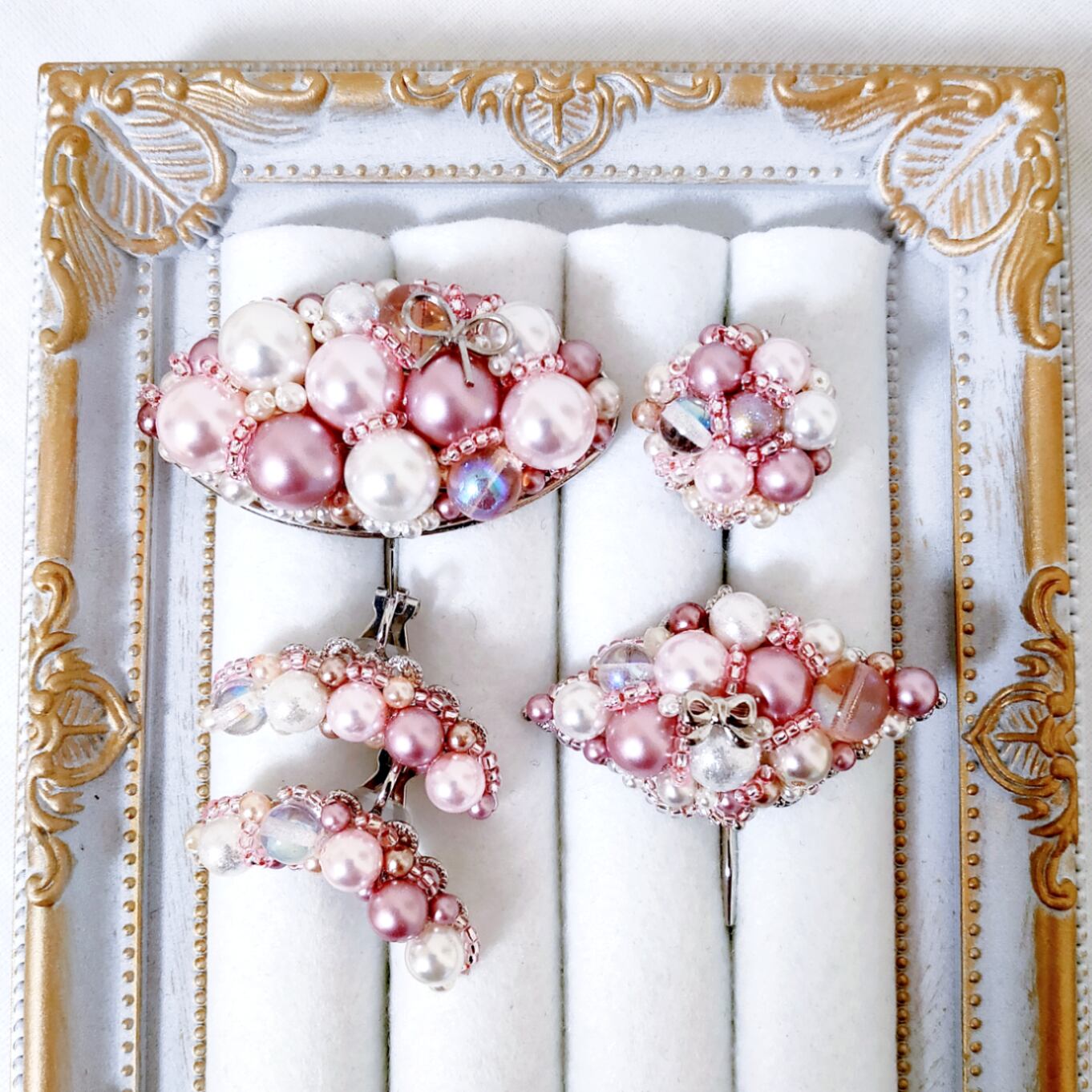 スワロフスキーやシャイニーパール、チェコビーズをたっぷりと使った、桜を思わせる華やかで優しいお色のイヤーカフです(*´▽`*)☆☆☆