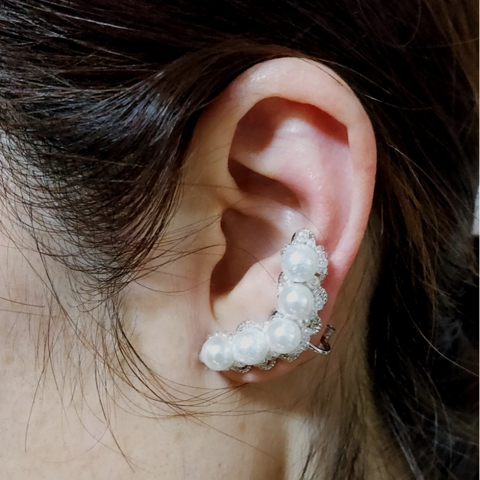 スワロフスキーやシャイニーパールを使った、ホワイトカラーのイヤーカフです(*´▽`*)☆☆☆