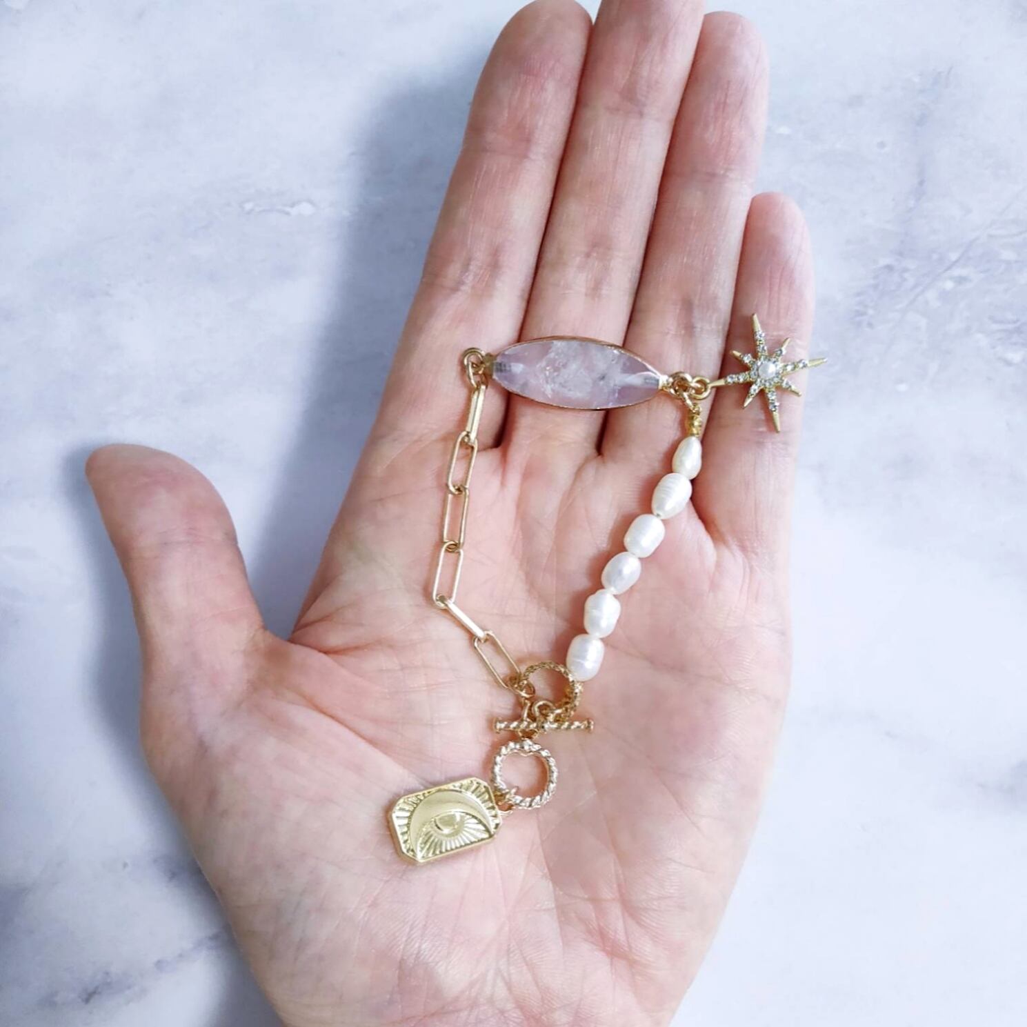 マーキス型のムーンストーンを使用したブレスレットてす。