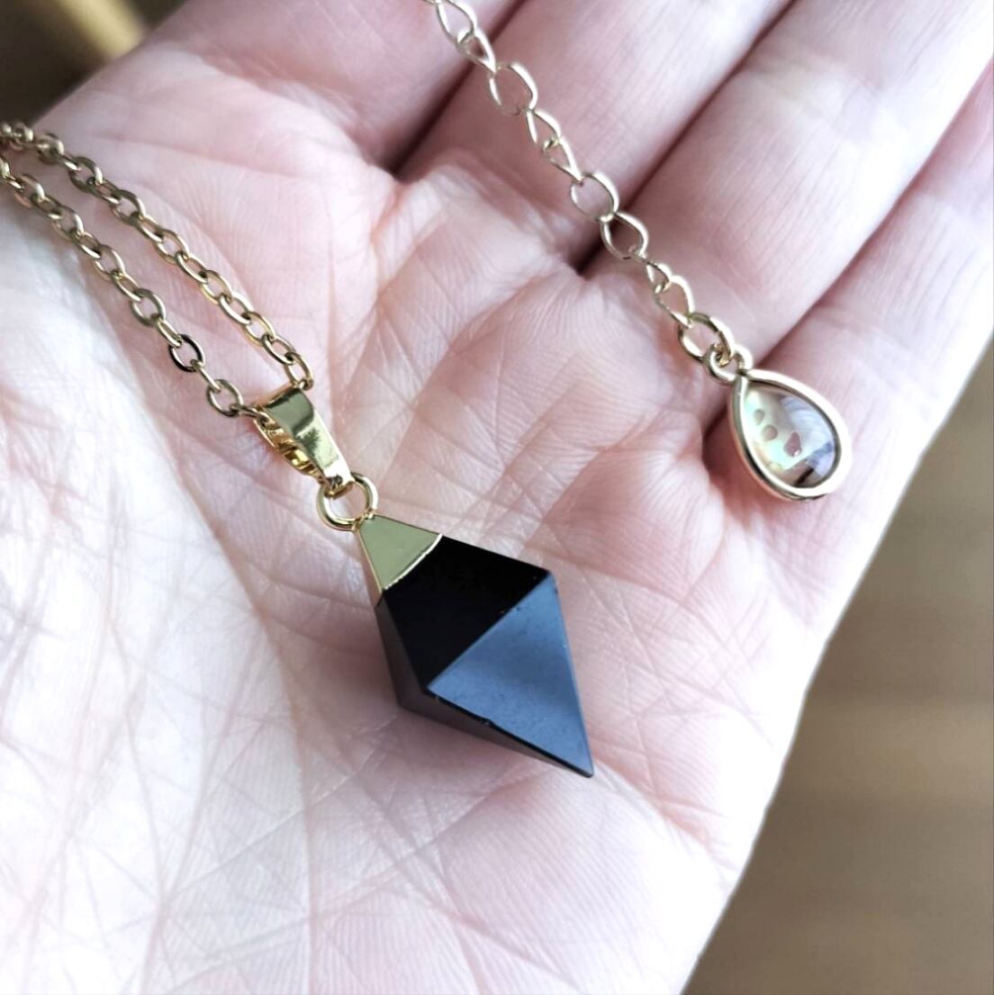 八面体の天然石ネックレスを5種類用意しております。