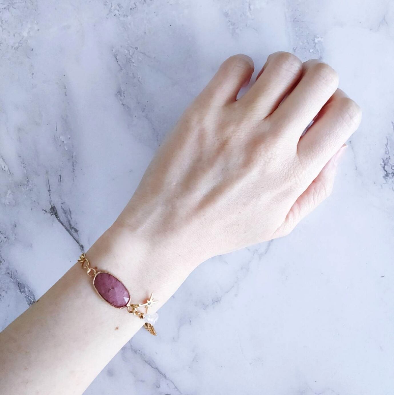 オーバル型のローズクォーツを使用したブレスレットで、優しい雰囲気が魅力的です✨